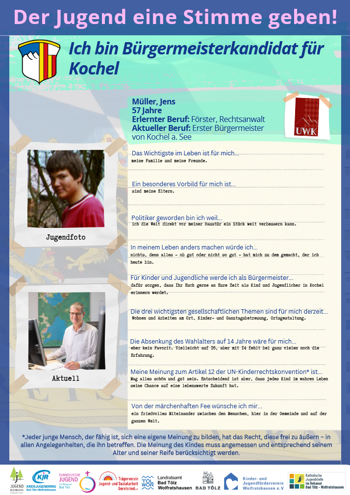 und Dank Ihrer Unterstützung auch die kommenden sechs Jahre sehr gerne als Erster Bürgermeister einer der lebenswertesten Gemeinden im Oberland, Ihrer und meiner Gemeinde Kochel a. See.